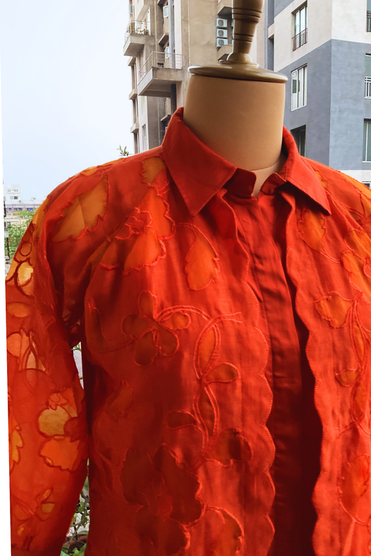 BURNT ORANGE DOUBLE LAYER ORGANZA SHIRT
