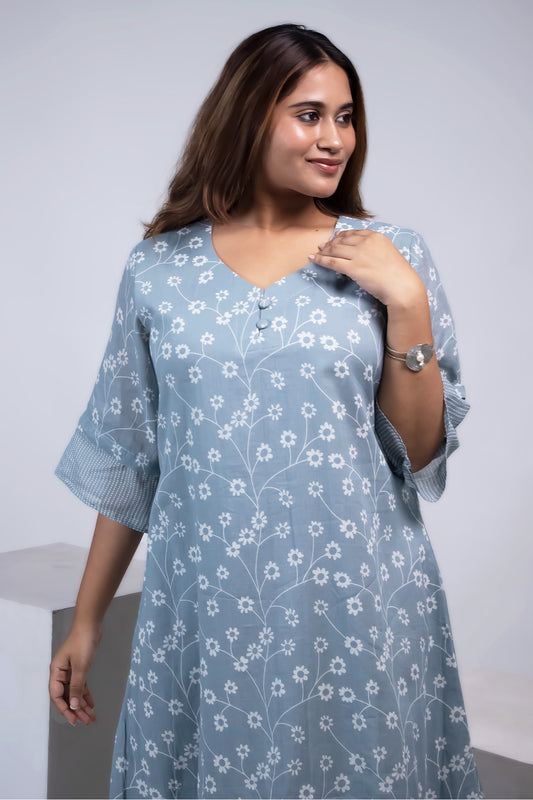 LAYERED ASYMMETRICAL DUSTY BLUE MUL DRESS