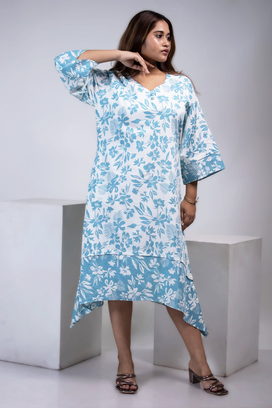 LAYERED ASYMMETRICAL WHITE BLUE MUL DRESS