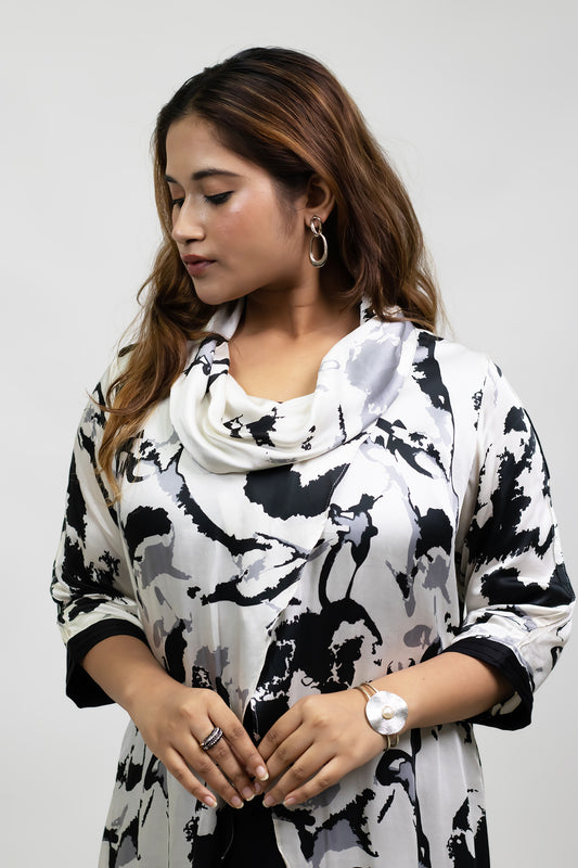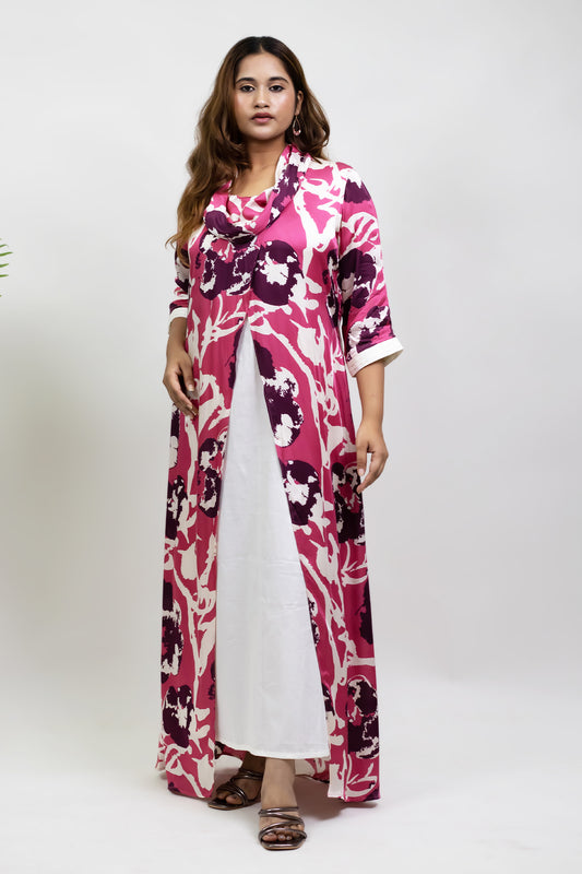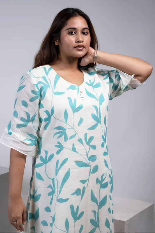 LAYERED ASYMMETRICAL WHITE GREEN MUL DRESS