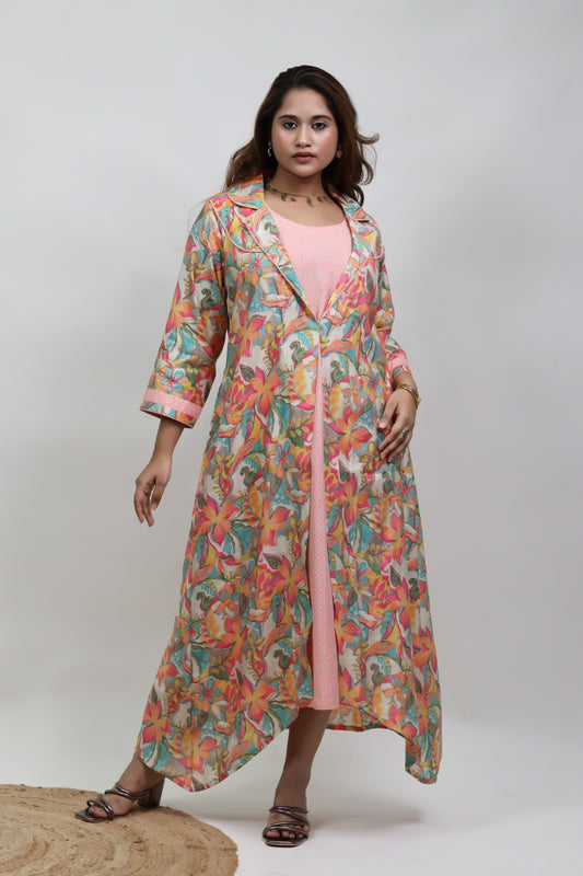 PEACH DIGITAL PRINT FRONT TRAIL DRESS
