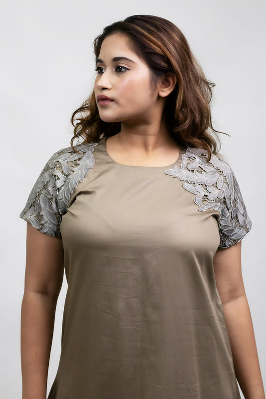 OLIVE CUTWORK KNEE-LENGTH DRESS
