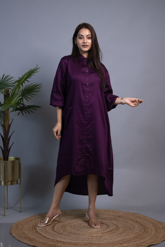 PURPLE ASYMMETRICAL SHIRT DRESS