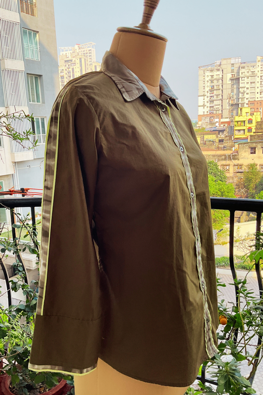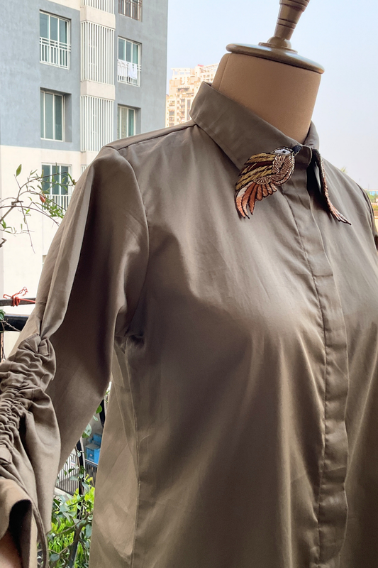 BIRD COLLAR EMBROIDERY OLIVE SHIRT
