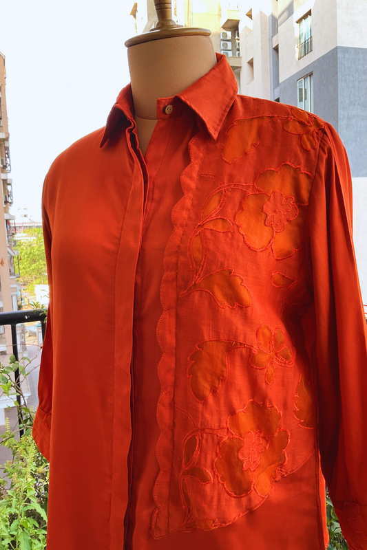 HALF ORGANZA ZERO WASTE BURNT ORANGE SHIRT