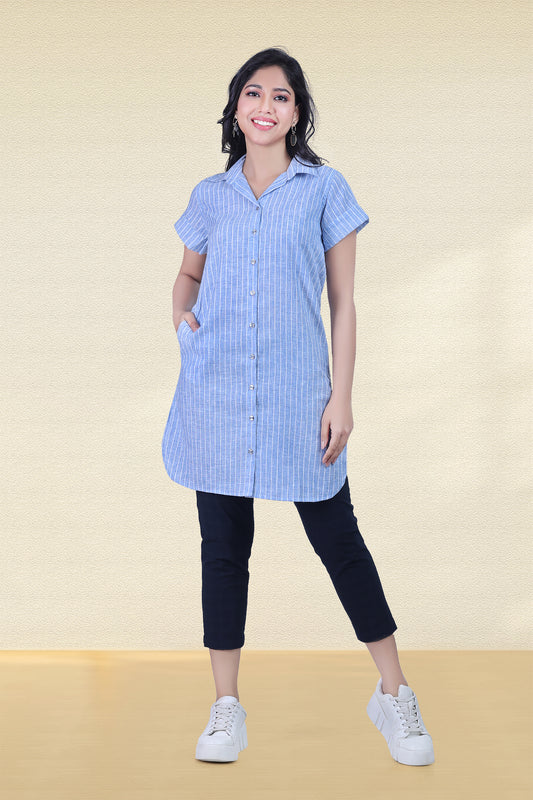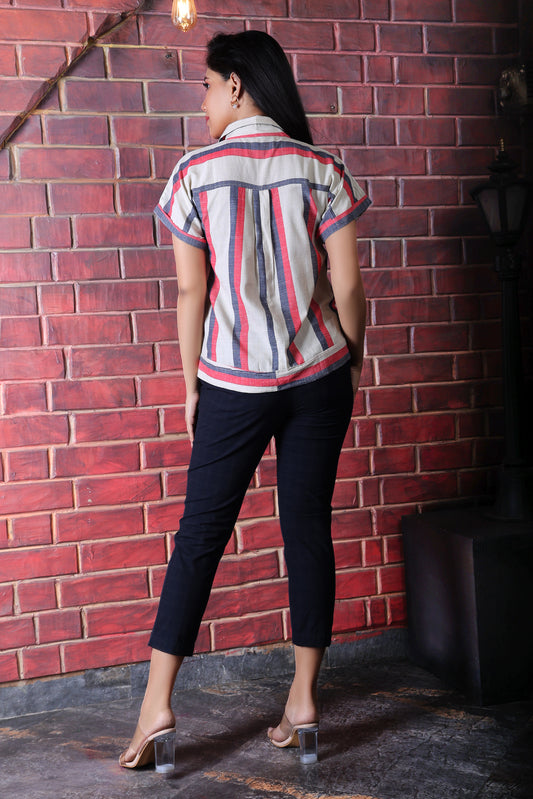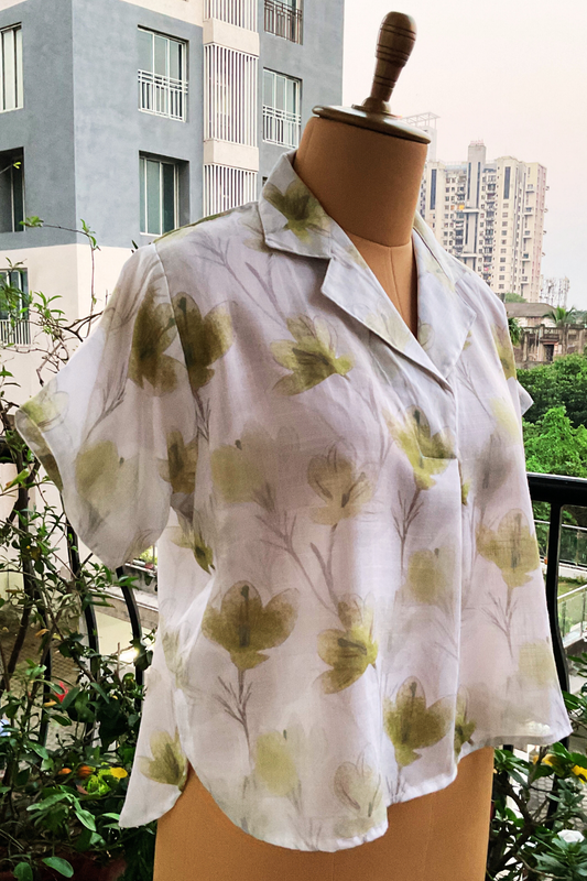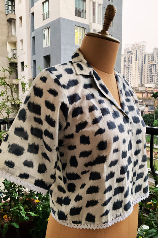 WHITE LAPEL COLLAR ZERO WASTE CROPPED SHIRT