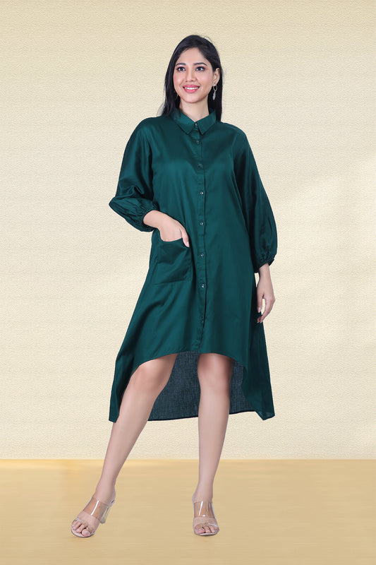 BOTTLE GREEN ASYMMETRICAL SHIRT DRESS