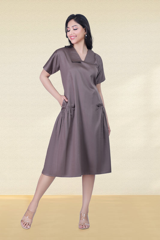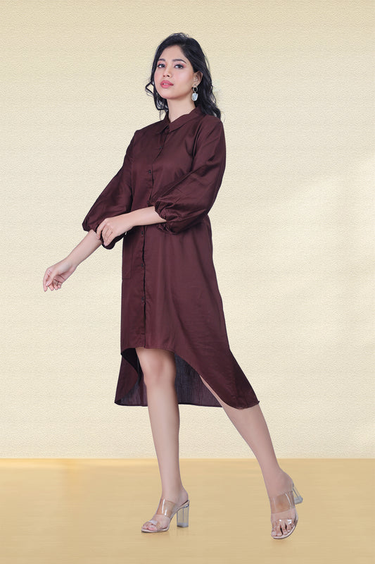 CHOCOLATE BROWN ASYMMETRICAL SHIRT DRESS