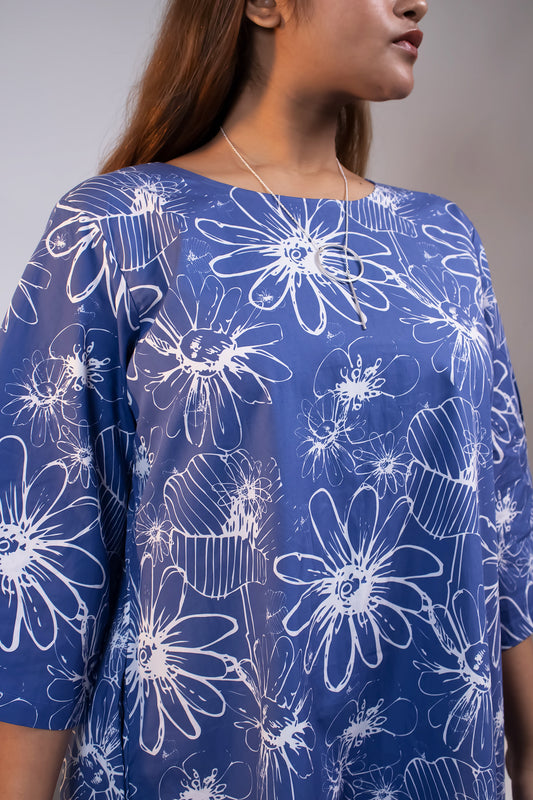BLUE WHITE BOX PLEAT DRESS