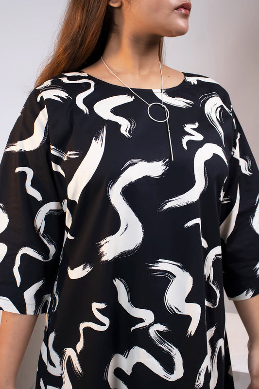 BLACK BRUSH STROKES BOX PLEAT DRESS