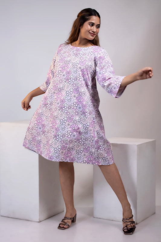 DENIM PRINTED OVERSIZED SHIRT DRESS